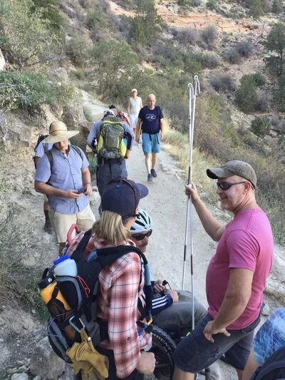 In prior blogs I wrote about the team and greater community that have grown from this idea. The “team” consists of not just those of us who ventured into the Grand Canyon, but also some key individuals who worked on the chair or helped us prepare for the trip. The immediate “community” is those people, businesses, and organizations that supported and encouraged us with donations of money or goods, or shared help and advice. The greater community is perhaps the one we really hadn’t expected. They are the ones that we met in the campground or along the trail. Or the people that told us how inspiring it was to see a wheelchair on the trail. Or the people that carried our packs and the broken wheelchair up the hill. Or the campground neighbors with a disabled son who called us “heroes”. It made us all feel good to know that we had touched others.