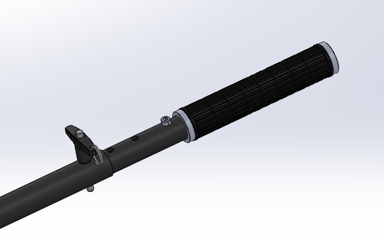The main segment of the handle now includes two detent pins: one for removing the entire handle from the forward beam, and another for attaching various handle options. This handle is the same length as the first design.